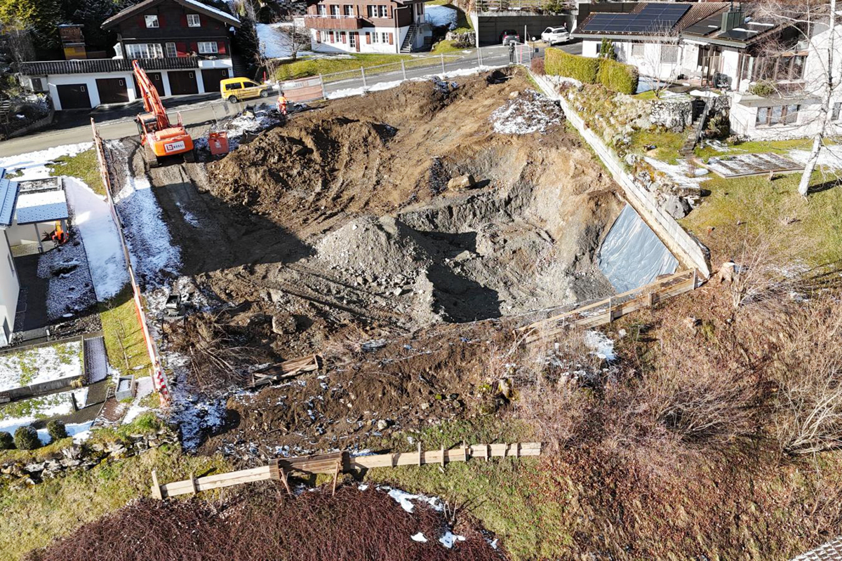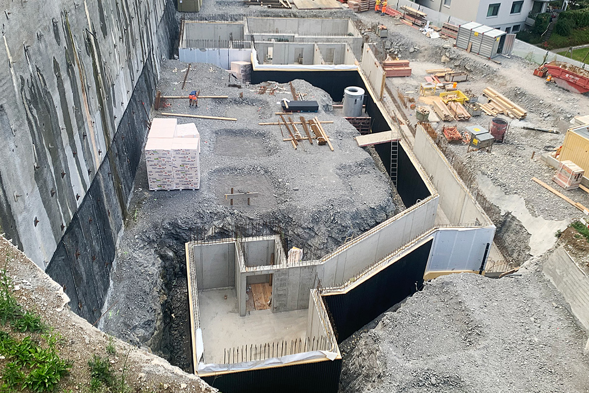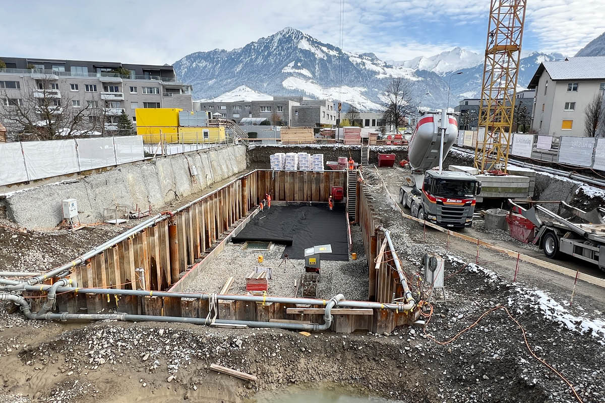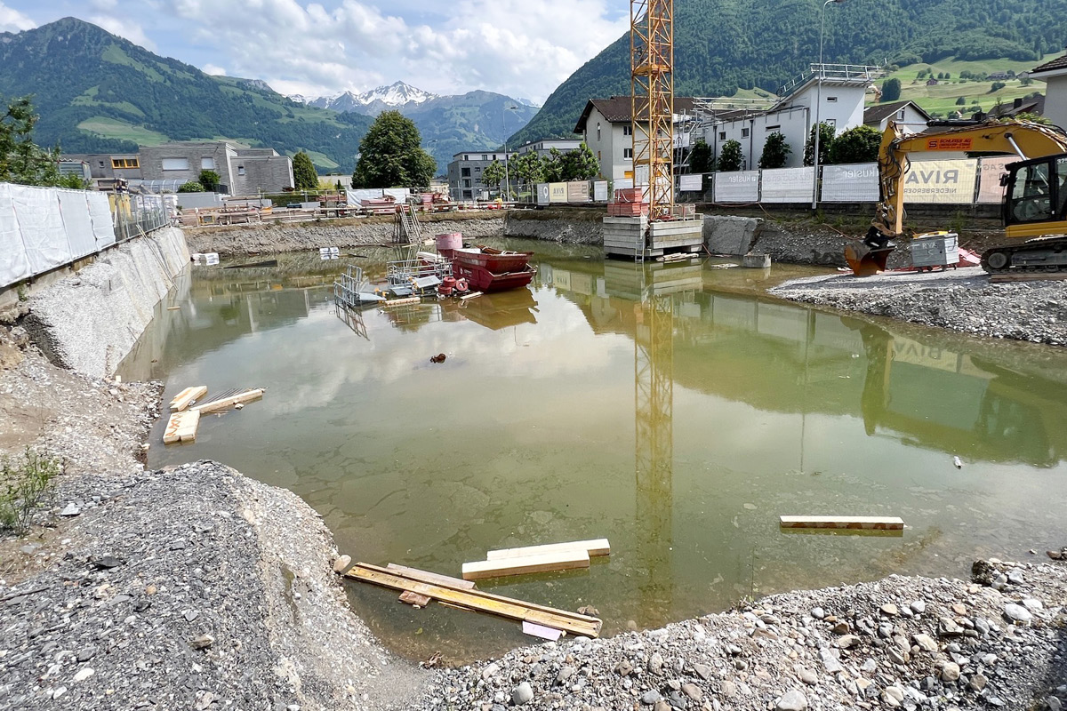 MFH Wettiweg: Baumeisterarbeiten gestartet. Baugrube mit Grundwasser mit Aufwand im Griff.