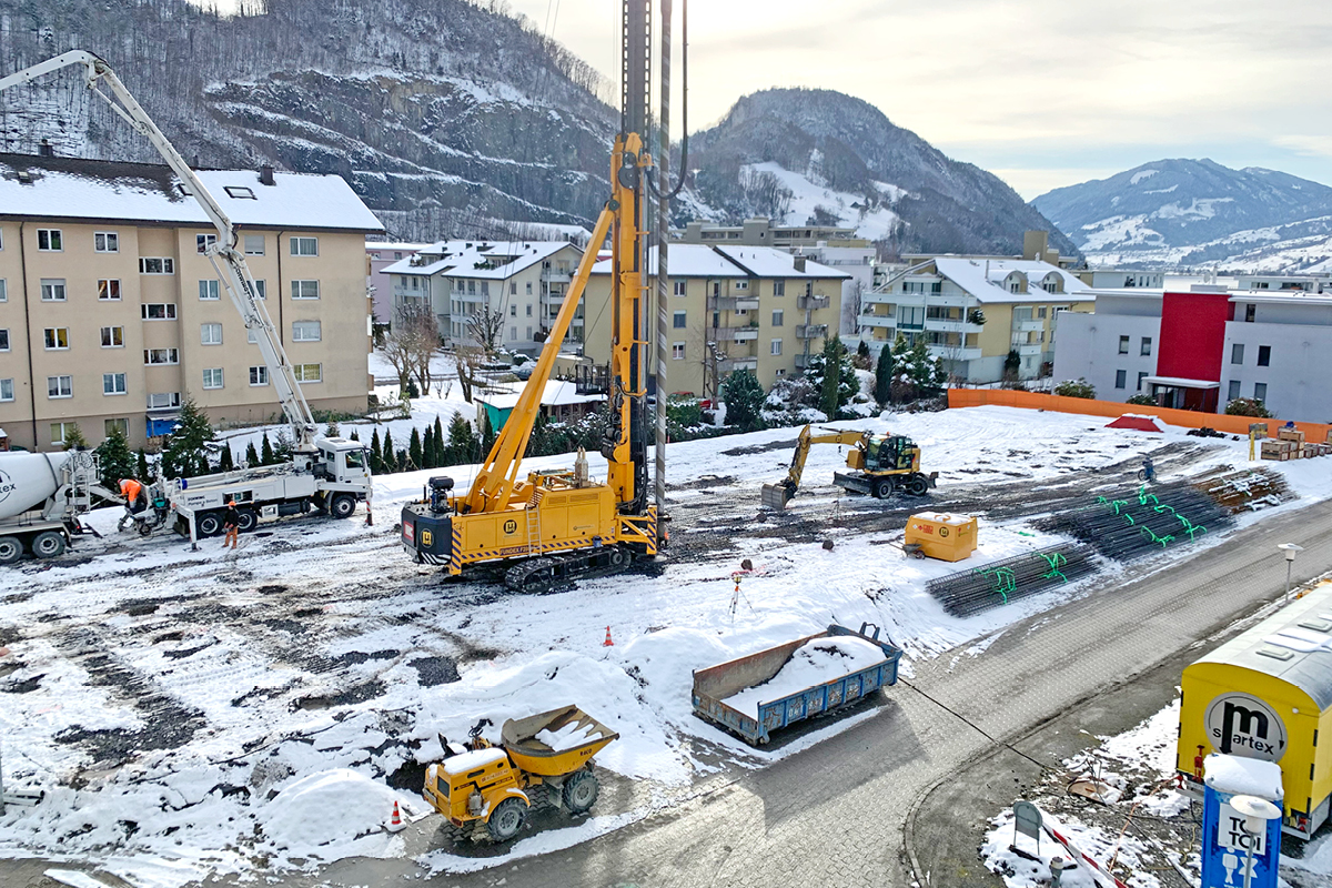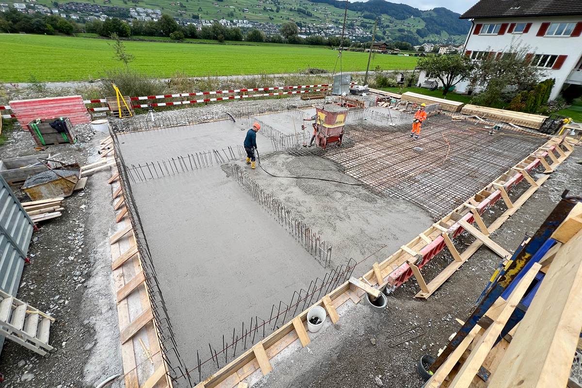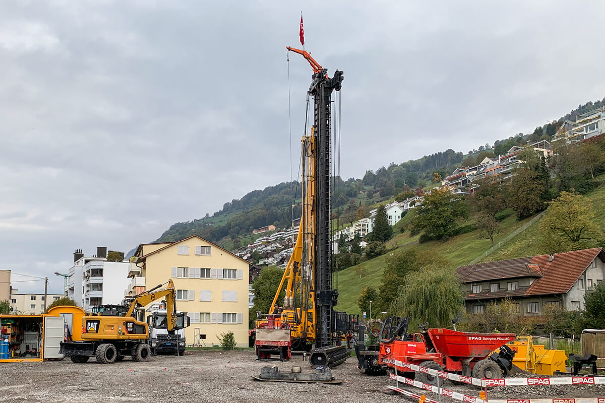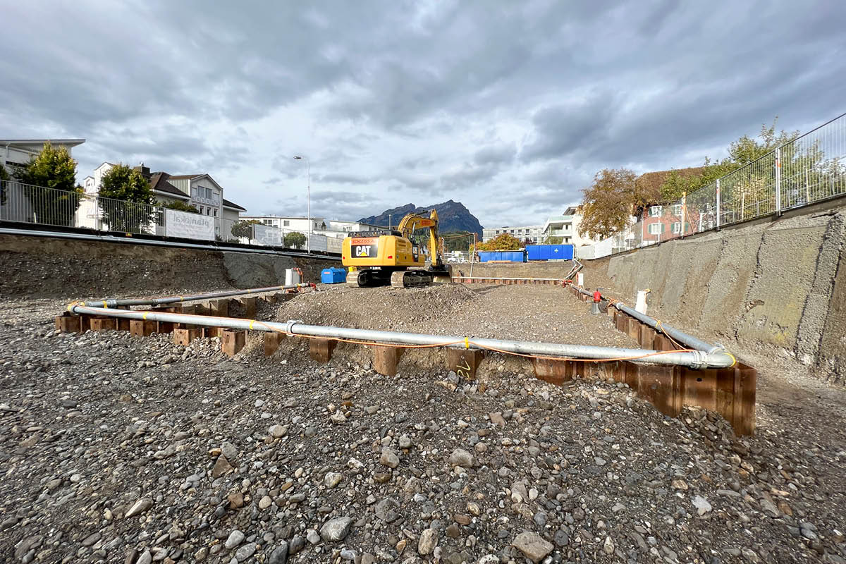 MFH Wettiweg: Baumeisterarbeiten gestartet. Baugrube mit Grundwasser mit Aufwand im Griff.