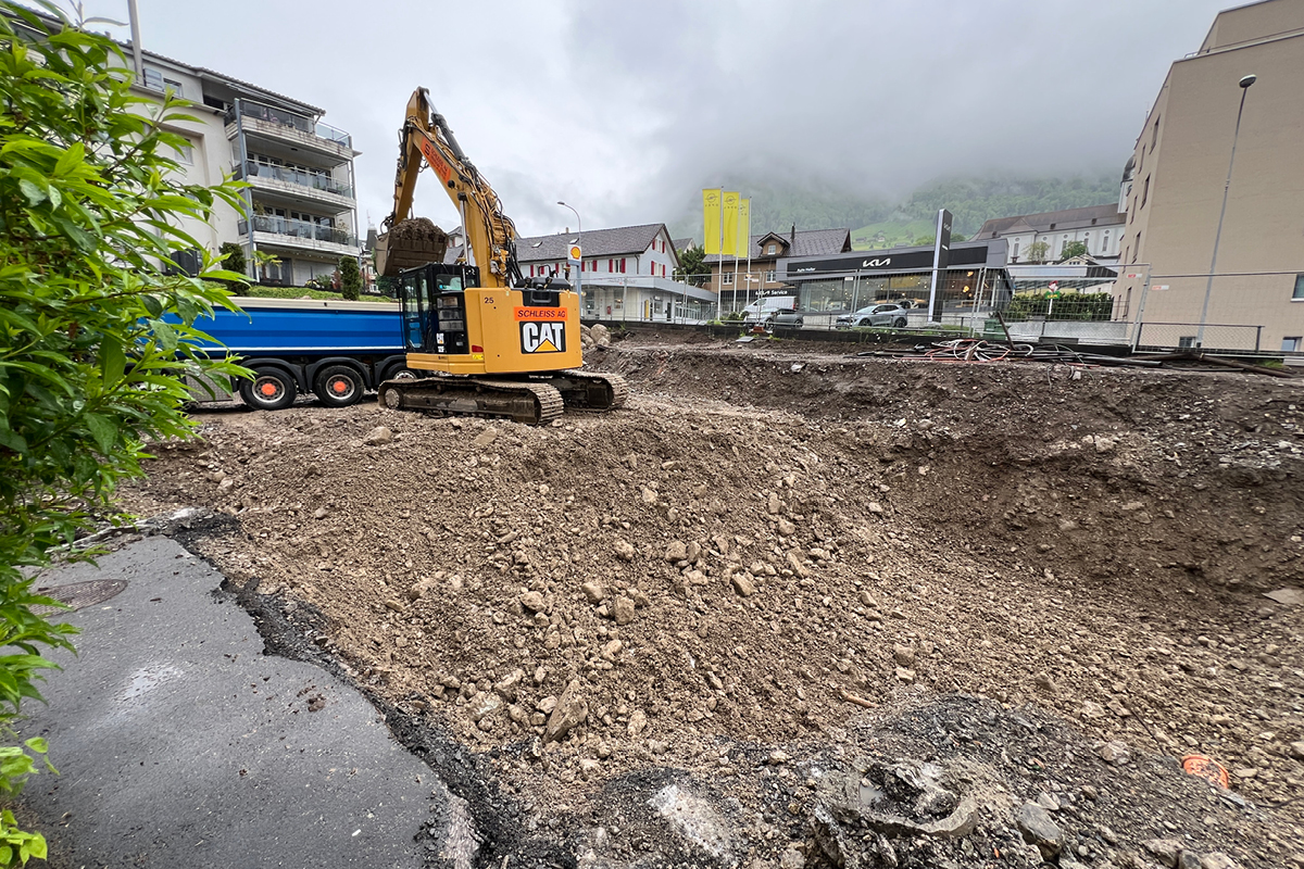 Überbauung Windleten: Start Aushub Tiefgarage.